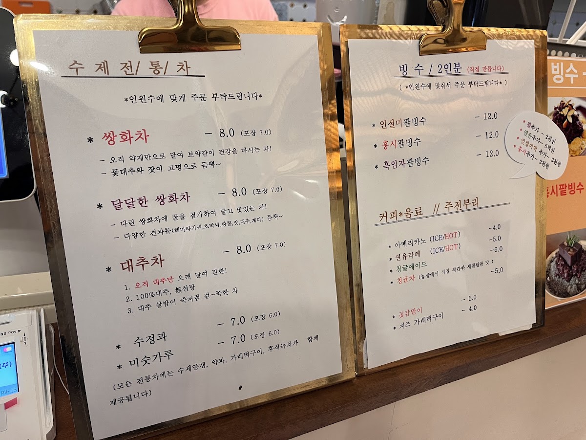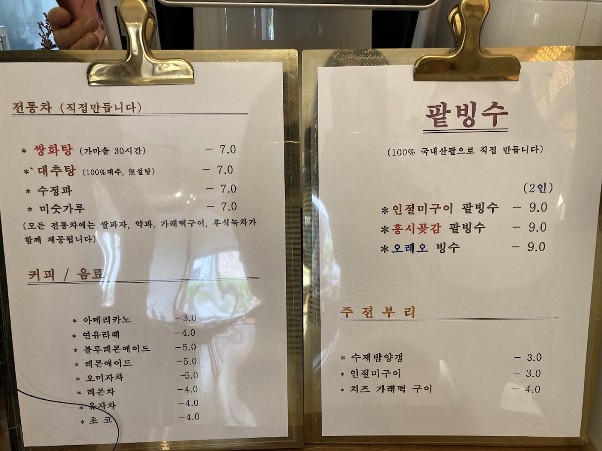 Dalin's menu is a delightful exploration of flavors, featuring healthy options like the thick, comforting dates tea and sweet red bean porridge. Customers rave about the rich, aromatic ginseng teas and an enticing selection of bingsu, particularly the refreshing persimmon variety topped with generous red bean. Each dish is served with a touch of elegance, often accompanied by mini traditional snacks.